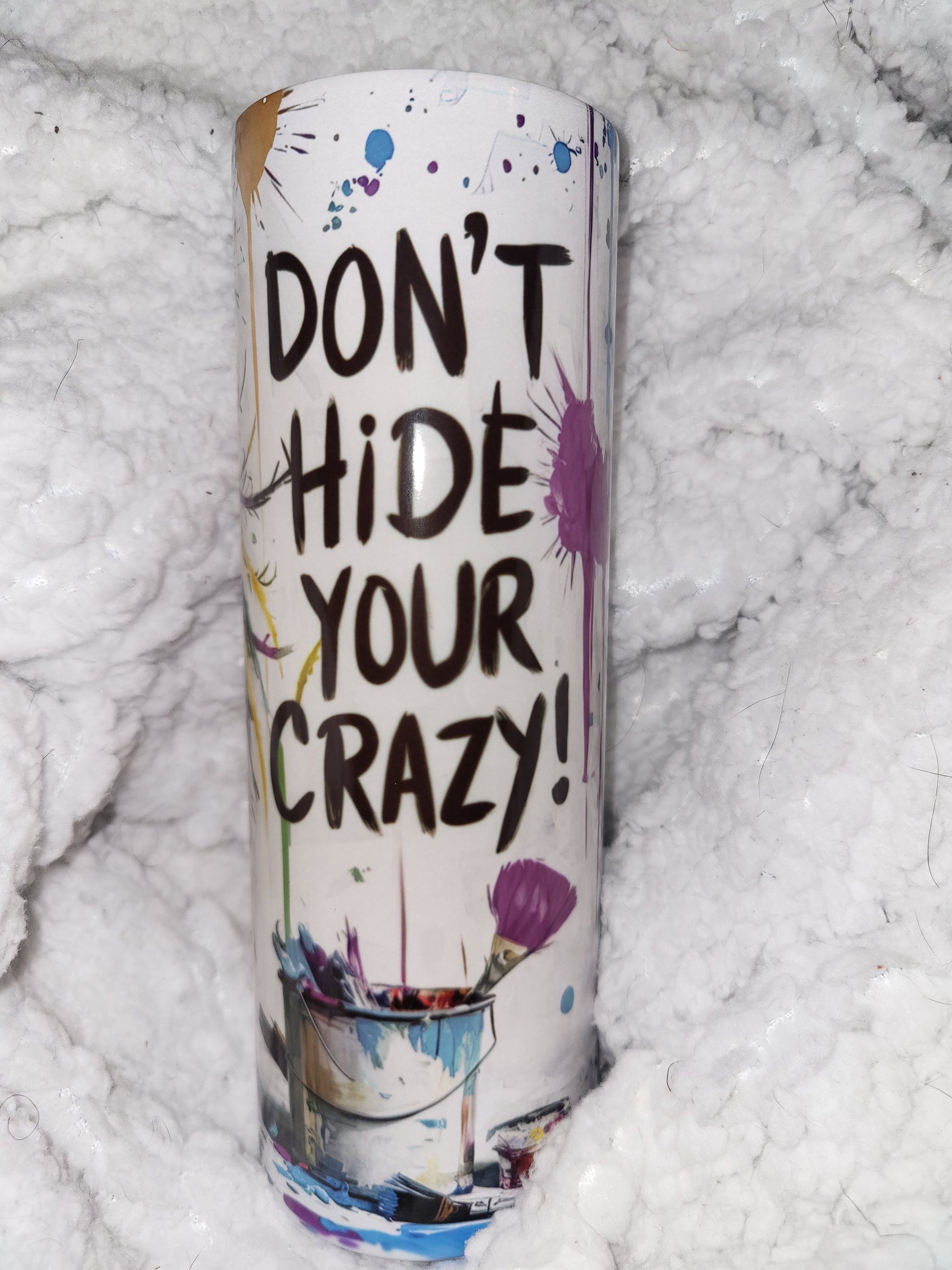 Embrace your unique self with our "Don't Hide Your Crazy" sublimation tumbler. With a playful design and high-quality sublimation printing, this tumbler is perfect for keeping your drinks hot or cold. Express your quirky personality while enjoying your favorite beverages!