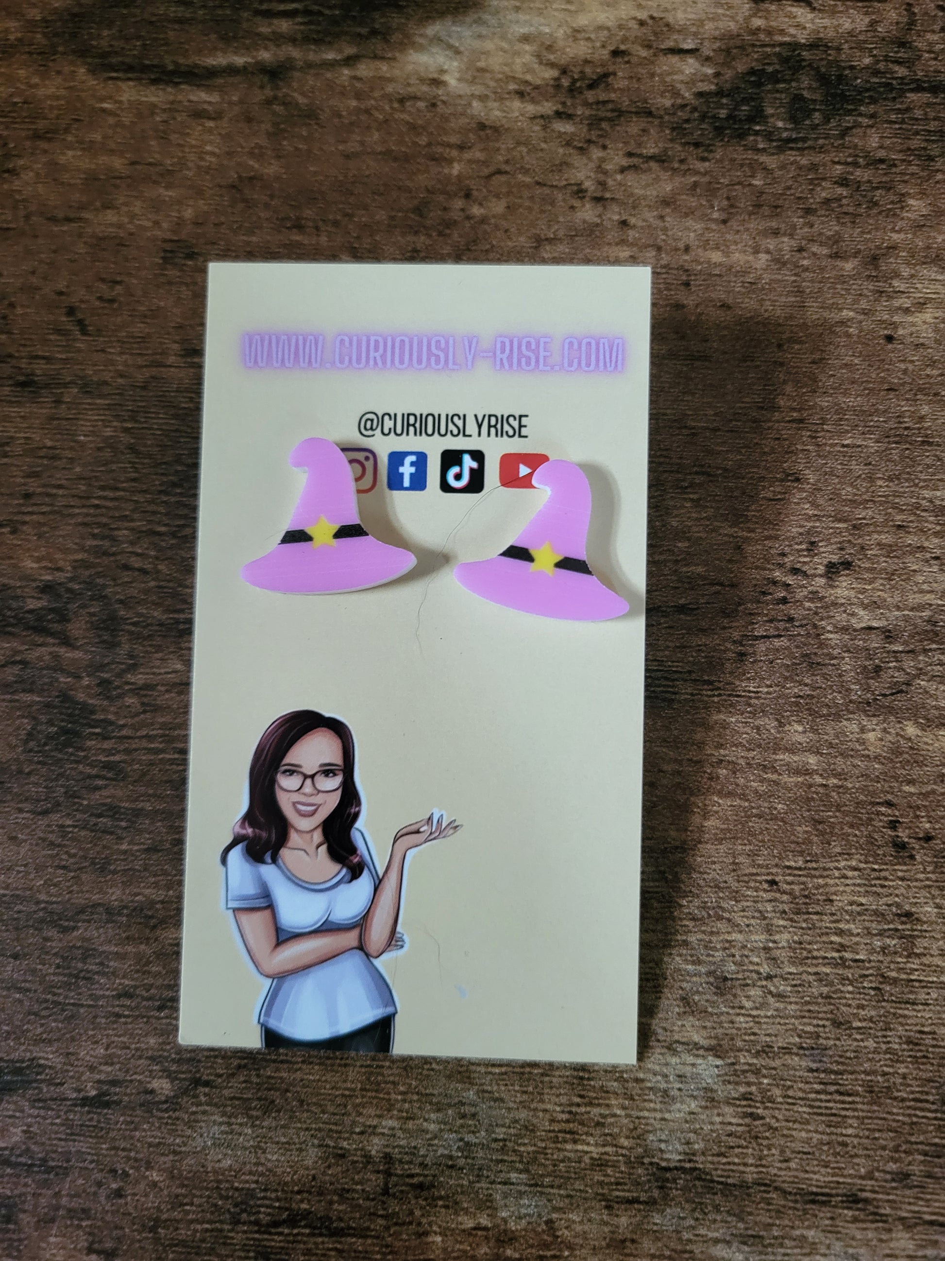 "Add a spooky touch to your style with our Halloween earrings! Choose from a witch hat, bat, bubbling cauldron, or moon design. Perfect for any Halloween party (or everyday)!"