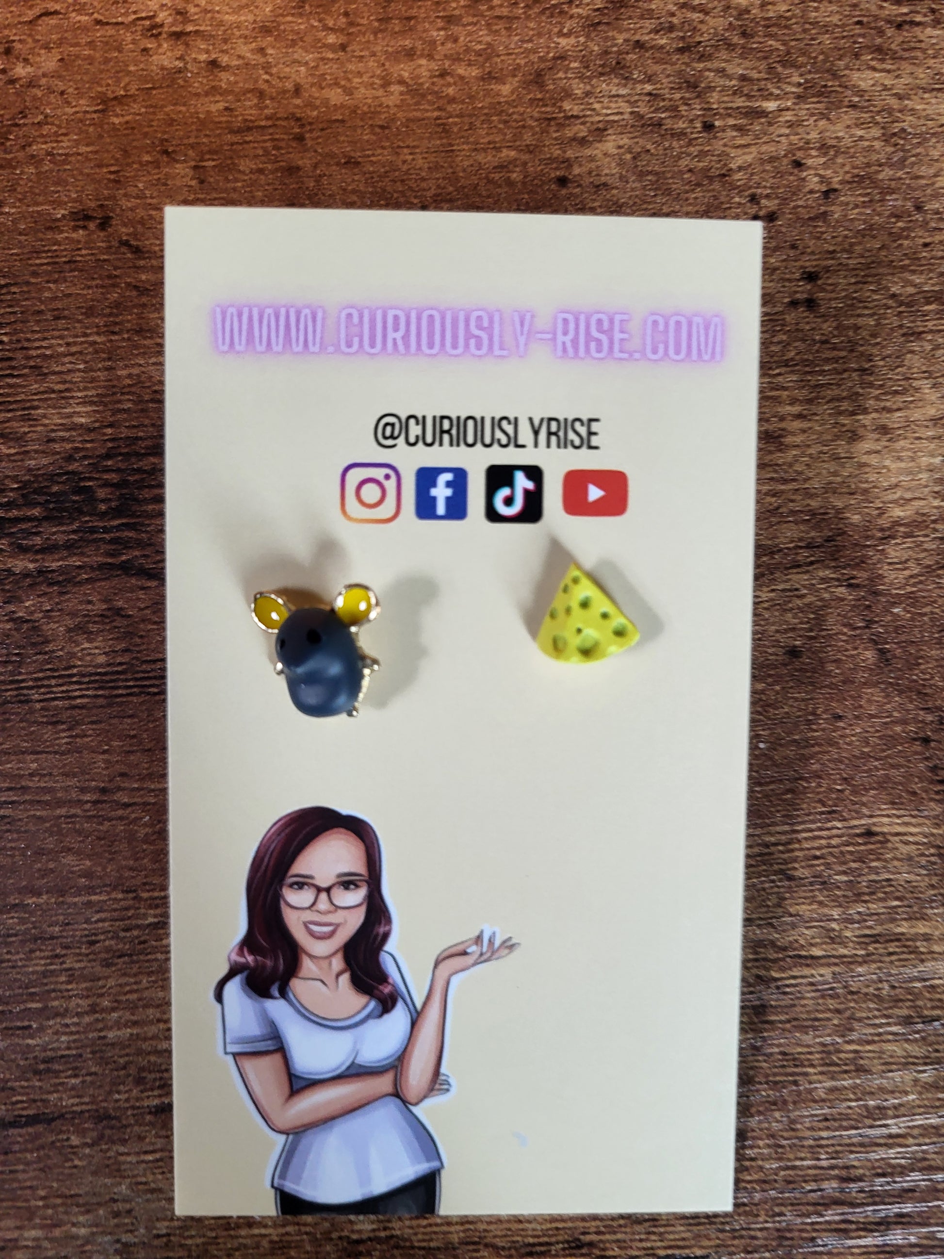 Add some whimsical charm to your outfit with these Mouse and Cheese Earrings! These earrings feature a playful combination of a mouse and a piece of cheese, perfect for those who don't take themselves too seriously. These quirky earrings are sure to make a statement and add a touch of humor to any look.