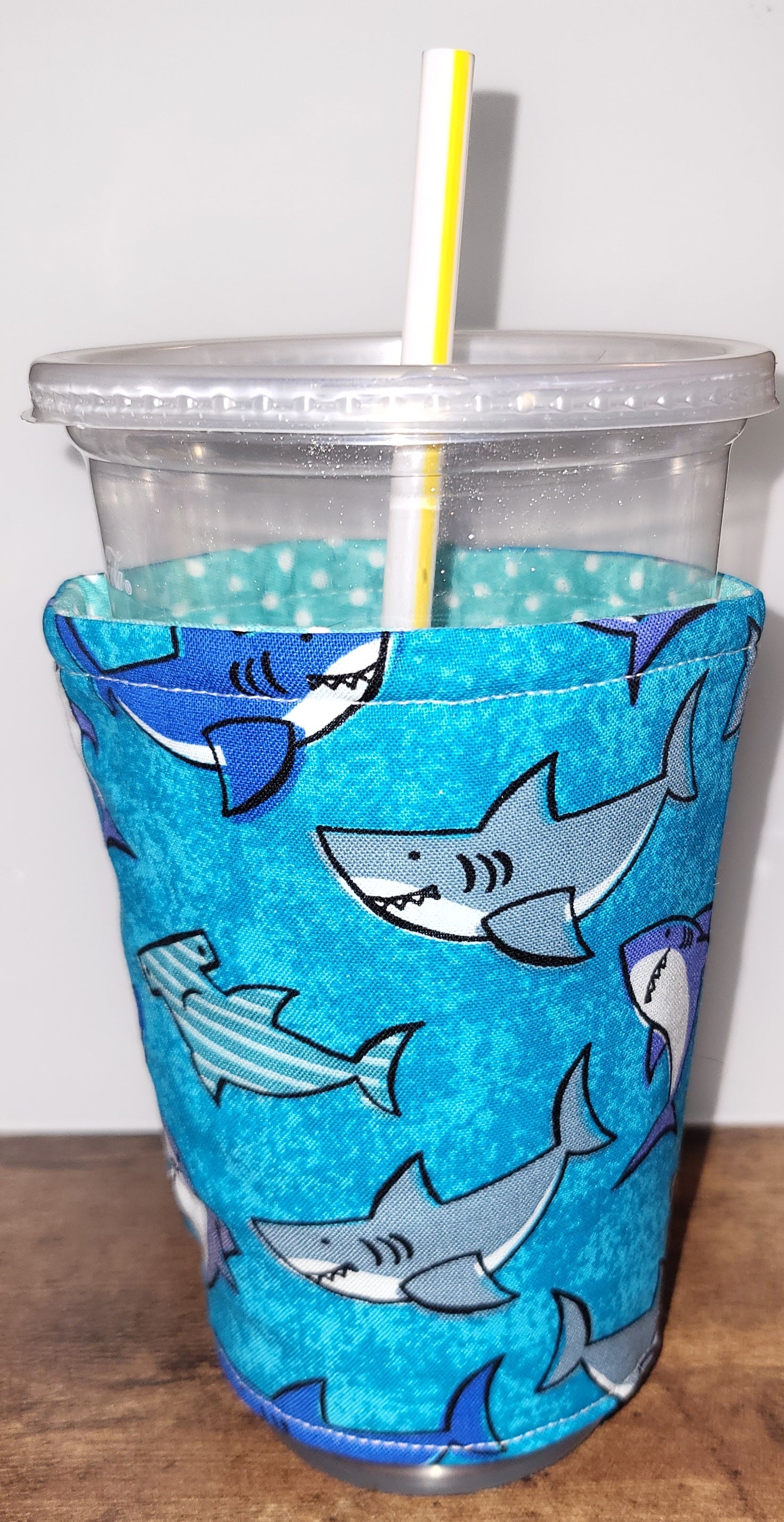 Keep your drink cool and turn heads with our Shark Reversible Cup Coozie. This quirky coozie features a playful shark design that is sure to make a splash at your next gathering. Plus, it's reversible for twice the fun. Drinks up!