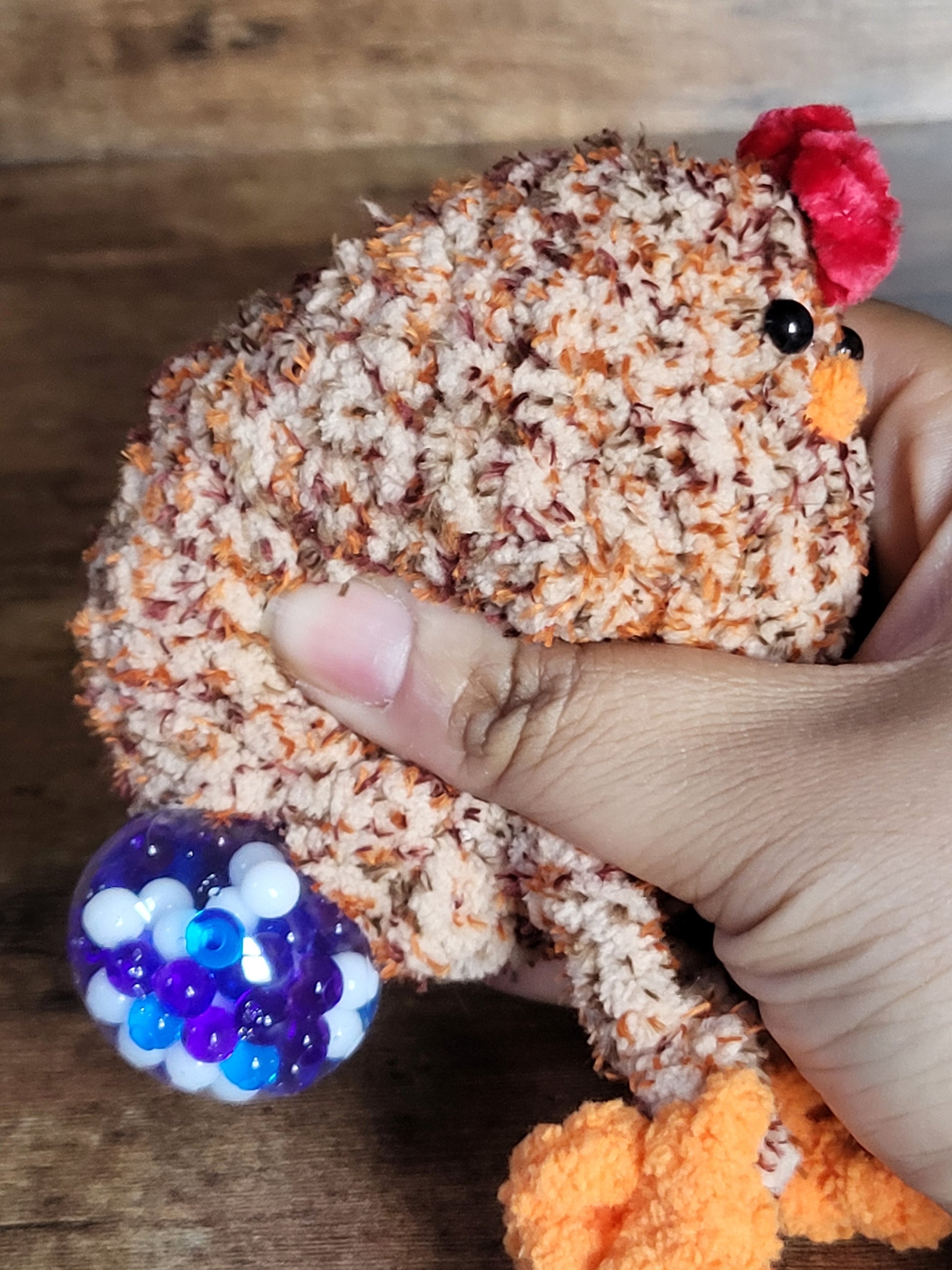 Get your stress relief with this quirky Stress Chicken! Squeeze away your worries with this fun and playful chicken that will leave you feeling relaxed and refreshed. No more fowl moods, just squeeze and release. Don't chicken out, try it now!
